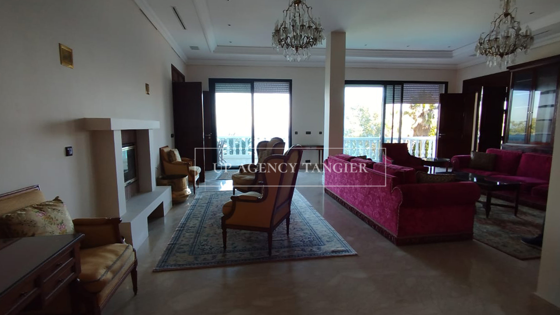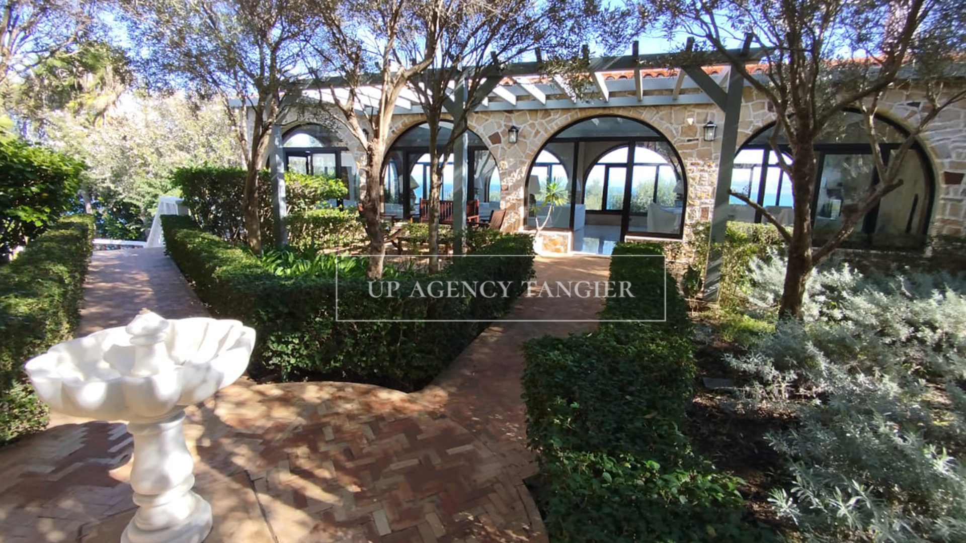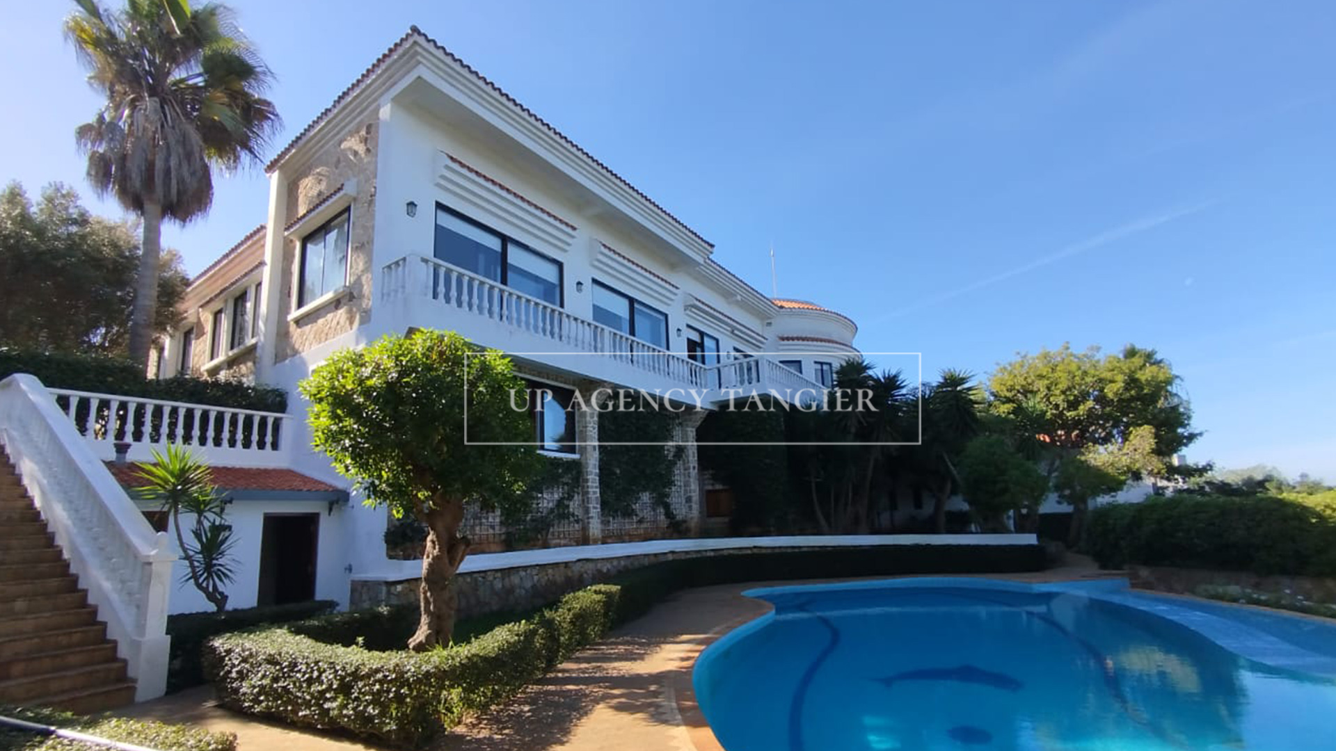 Grande villa à vendre à Tanger, dans le quartier exceptionnel de Marshan, avec vue panoramique sur le front de mer du Détroit de Gibraltar, très grande surface habitable de 2.000 m2 sur un vaste terrain de 6.914m2.